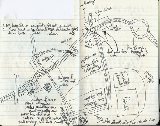 The other night I couldn’t sleep because I kept thinking about this one section of Tyler. The latest iteration of the city within my mind is a revision of a section of Tyler which can be accessed via Google maps (click here). This section has the potential to be a destination for the entire East Texas region. This section is an rhetorical statement for every visitor that states, “Welcome to Tyler. Please enjoy the benefits of a city that invests in that which makes it unique and beautiful.” This section invites all to congregate and create memories and friendships within the beautiful context of a city that is unmistakably and undeniably Tyler, TX.