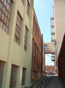 Third, the proximity of this space is paramount. It’s within a block of Don Juan’s, Rick’s, Jake’s, The Downtown Coffee Lounge, Balance, banks, the jail and of course the courthouse. Today, the valley is blocked off from the square by a row a businesses that would benefit from a backdoor. Let’s take Rick’s on the Square for example. The back side of Rick’s (pictured) opens directly onto the valley.