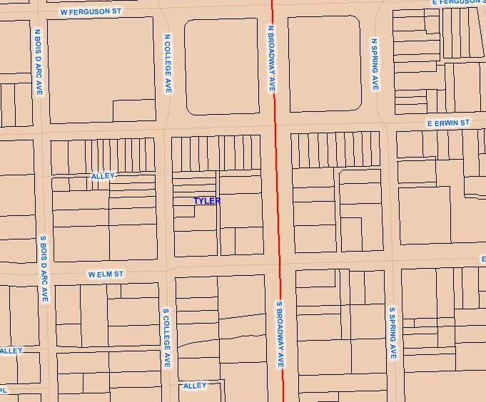Unfortunately, according to the Smith County Map Site, the property extending into the parking lot is all privately held by the surrounding buildings (thanks to @calebc for the tip). Hopefully, these business owners would see that the potential value of the space far outweighs that of another parking lot. To me, the potential of this location potential is particularly impressive because of it’s unique combination of elements: Nostalgia, drama, and proximity.