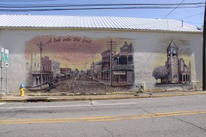 In Houma, I experienced the mélange of Louisiana cultures: Country music bars, party busses blaring rap music (it was Mardi Gras weekend), old southern mansions, a beautiful old courthouse and food carts serving Mexican food. As I walked through the city I noticed a mural of an old “Main St.” scene (above). “A look in to the past …” the mural reads, “Historic Downtown Houma.” The larger image is of “Main Street looking west” and the smaller image to the right is of the old Houma Courthouse ca. 1906. I suppose this mural, sponsored by the Downtown Business Association, was an attempt to remind people in the region of the proud history of Houma. Hopefully visitors will enjoy a stroll “into the past,” spend their money, and come again.