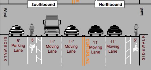 The National Complete Streets Coalition (NCSC) states that “Complete Streets are for everyone.” While there is no singular definition of a complete street, NCSC states that a city committed to transportation choices will ensure that “every transportation project will make the street network better and safer for drivers, transit users, pedestrians, and bicyclists – making your town a better place to live.” (NCSC also listed the “elements of an ideal Complete Streets policy” to help local citizens tailor the concept to their locality.) Thus, a complete street will have defined spaces designated to those citizens not driving in cars: