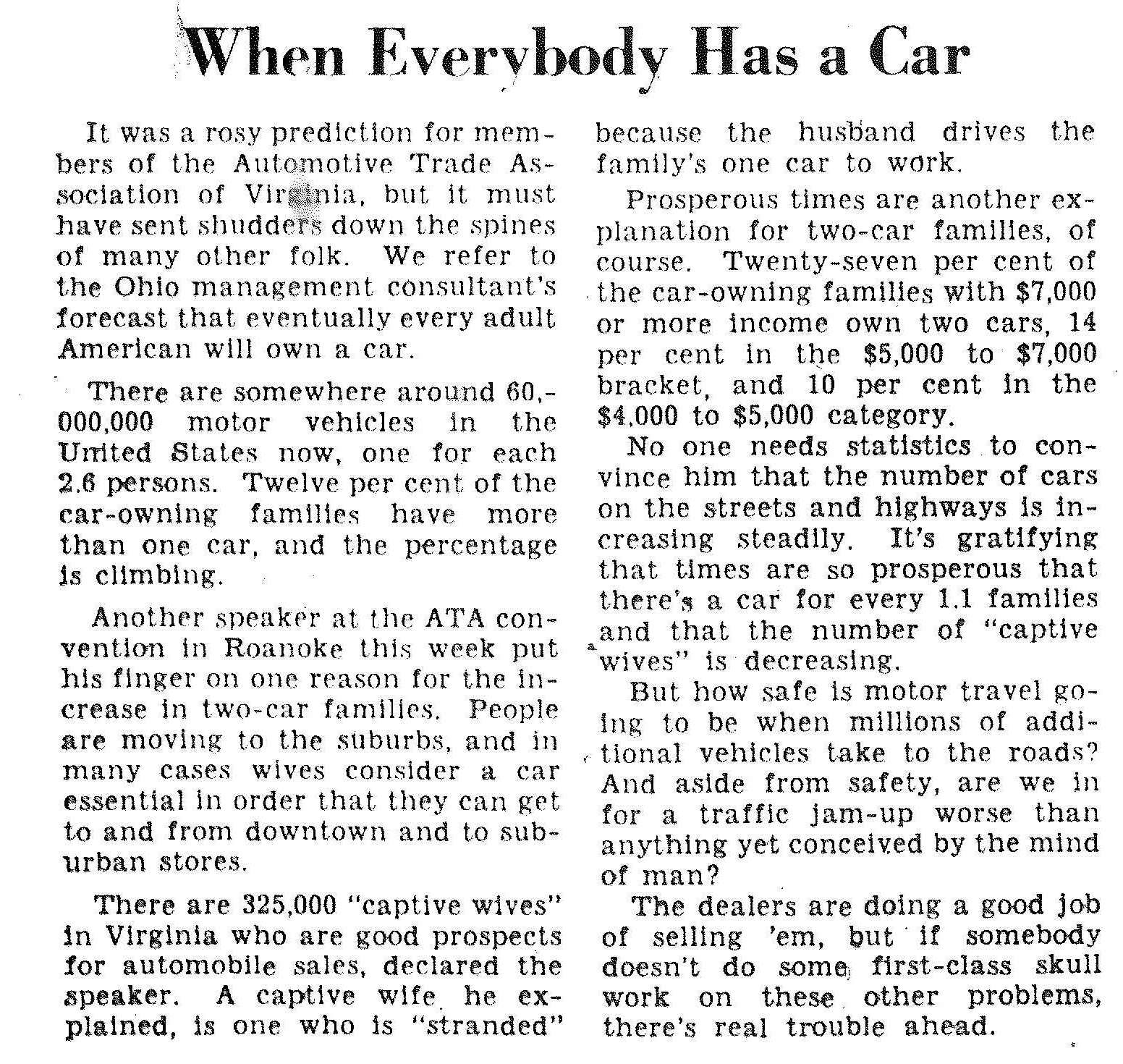 On Monday Nov. 14 1965, the Richmond Times-Dispatch published an article in the opinion section. It reads,