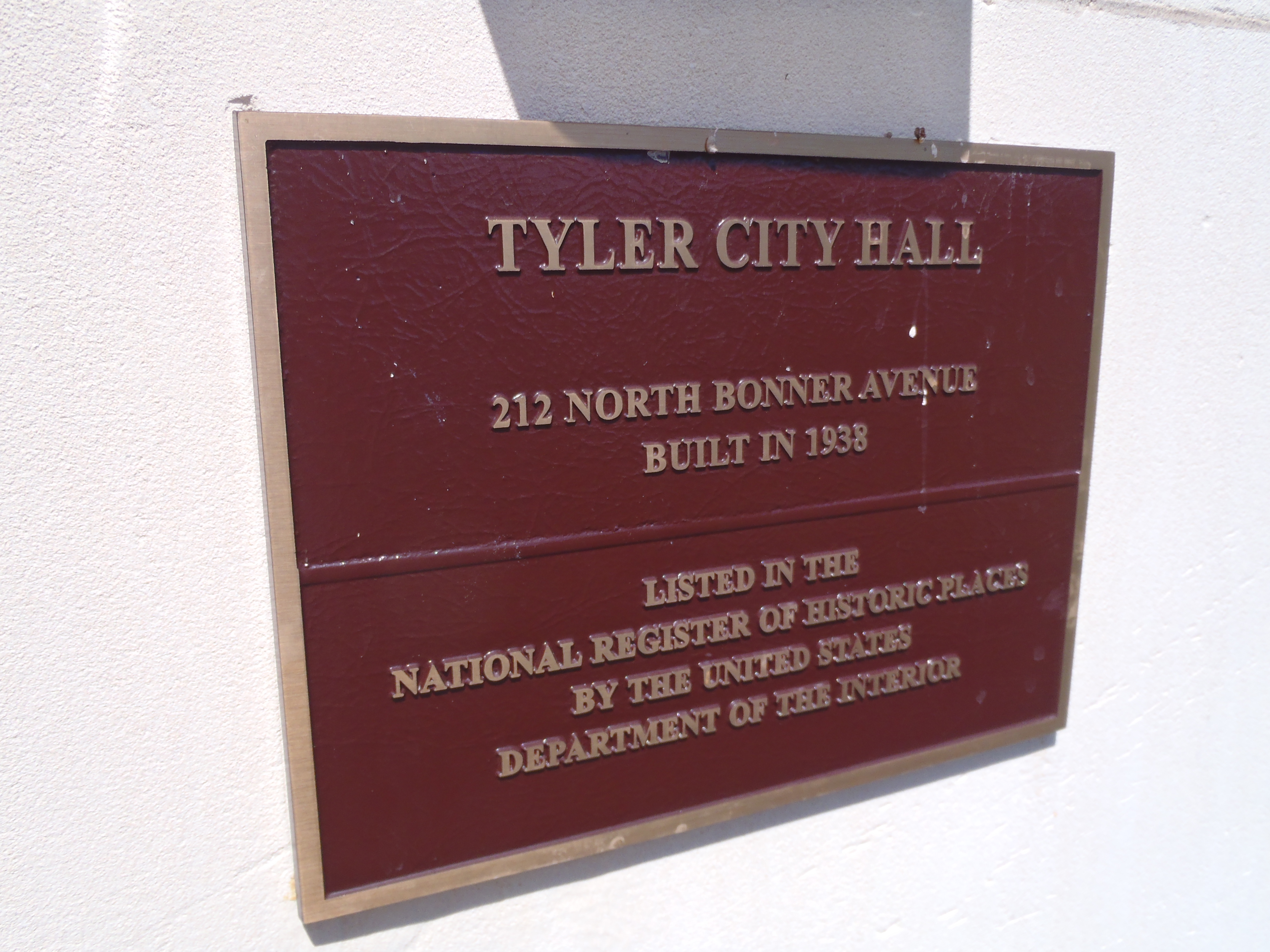 You might not know this (I didn’t until recently), but Tyler has a City Hall. The mayor and city manager work there along with other public officials and board members. It’s on Bonner Avenue just north of the wasteland formerly known as King Chevrolet. I like the building because it’s a decent Art Deco piece from the 30s when Tyler was awash in oil revenue and looking to the world for inspiration. It’s also surrounded by nice grounds, picnic tables, and benches. Take a look:
