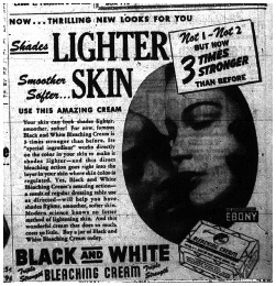 One of the more surprising aspects of my research into Richmond newspapers was the sort of stuff I found in the Afro-American (Now the Richmond Free Press). My primary research interest, the story of a highway being build through Black neighborhoods, was hardly covered. In addition, I didn’t find the “Black is beautiful” perspective of Marcus Garvey and his contemporaries. Instead, I was devastated to find ads such as this one to the right promising lighter, softer skin. I share it because, like me, you may not have known that this ad existed in 1950s Richmond. I share it so that we all can have a tiny connection to the past.