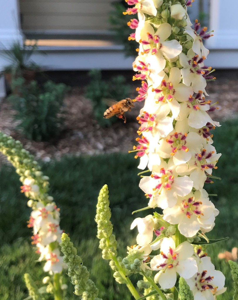 Yesterday morning I shared a sugar snap pea with my 18-month old while we watched bees forage on some Verbascum (Mullein) that I planted earlier this month. I’ve had some flops this year so far including beets, fennel, poppies, bachelor’s button, etc. I’ve already rearranged several plants that were either crowding each other out or not getting the amount of sun they require. So often, all I can think about is the work that still needs to be done, but in that moment, thinking about the benefits to nature and our quality of life, I was grateful for something going well. And considering the ease of use and the quick reward I will definitely be doubling down on these peas next year.