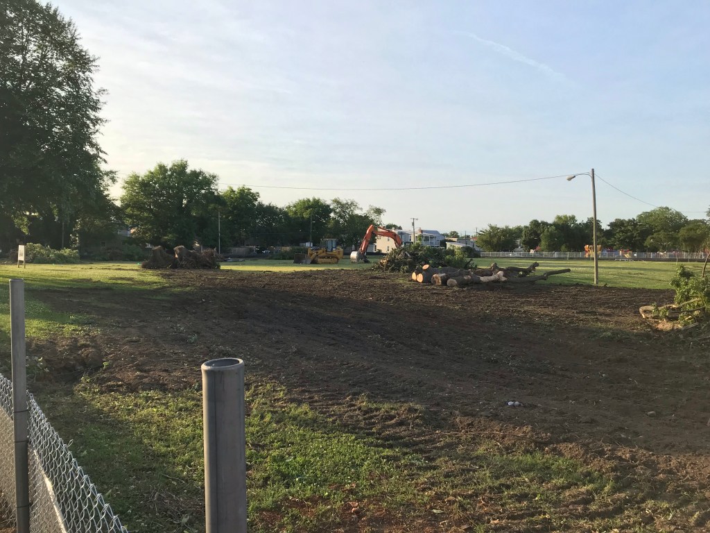 I used to live near the former Ethel Bailey Furman park in Church Hill. It was mostly an open field for dogs to run, pick-up baseball, ultimate frisbee, bike polo, and block parties. Around the perimeter of the park we’re around a dozen old, hardwood trees. When the city decided to build a school on the park property, the A&E firm they hired just erased them. I came home one day to a massive pile of roots and branches that had all been still in the ground when I left that morning. Here are some before photos: