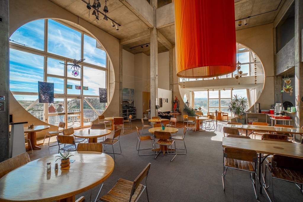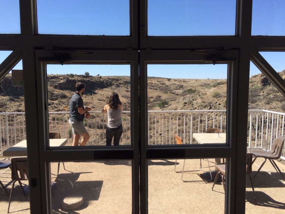 My experience of the visit was overall positive and inspiring. Arcosanti is a place completely of its own invention. It is a monolithic, Tatooine-like, concrete village on a ridge overlooking a valley just minutes off the highway. The walls of the room where we ate are enormous, with massive round circular windows and expansive high ceilings to provide space for hot air to rise. The photo below is from the patio off of that room.