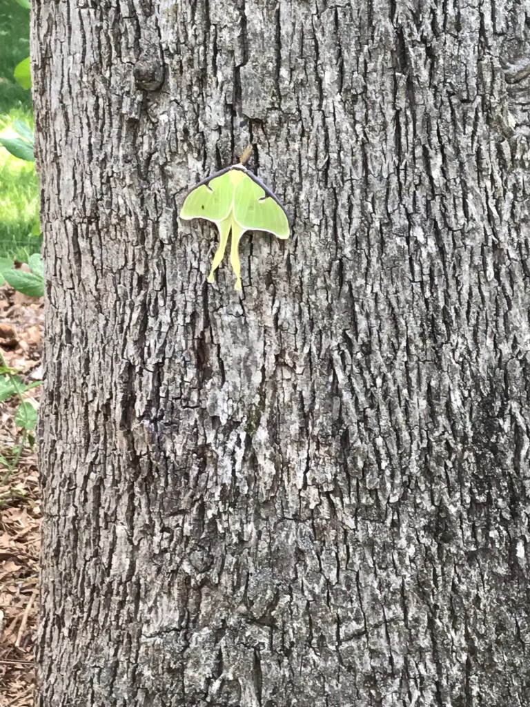 We are just exiting spring in Richmond. There are flowers on asters, peas, Spiderwort and mullein. Buds on the coneflower, beardtongue, yucca, and yarrow. And by the afternoon today and tomorrow, the temperatures are expected to approach triple digits, twenty degrees above average. Texas recently struggled to produce enough energy during a heat wave and in India birds fell from the sky. When I got home yesterday, with the weather and everything else on my mind, I was gifted a visit from a Luna moth.