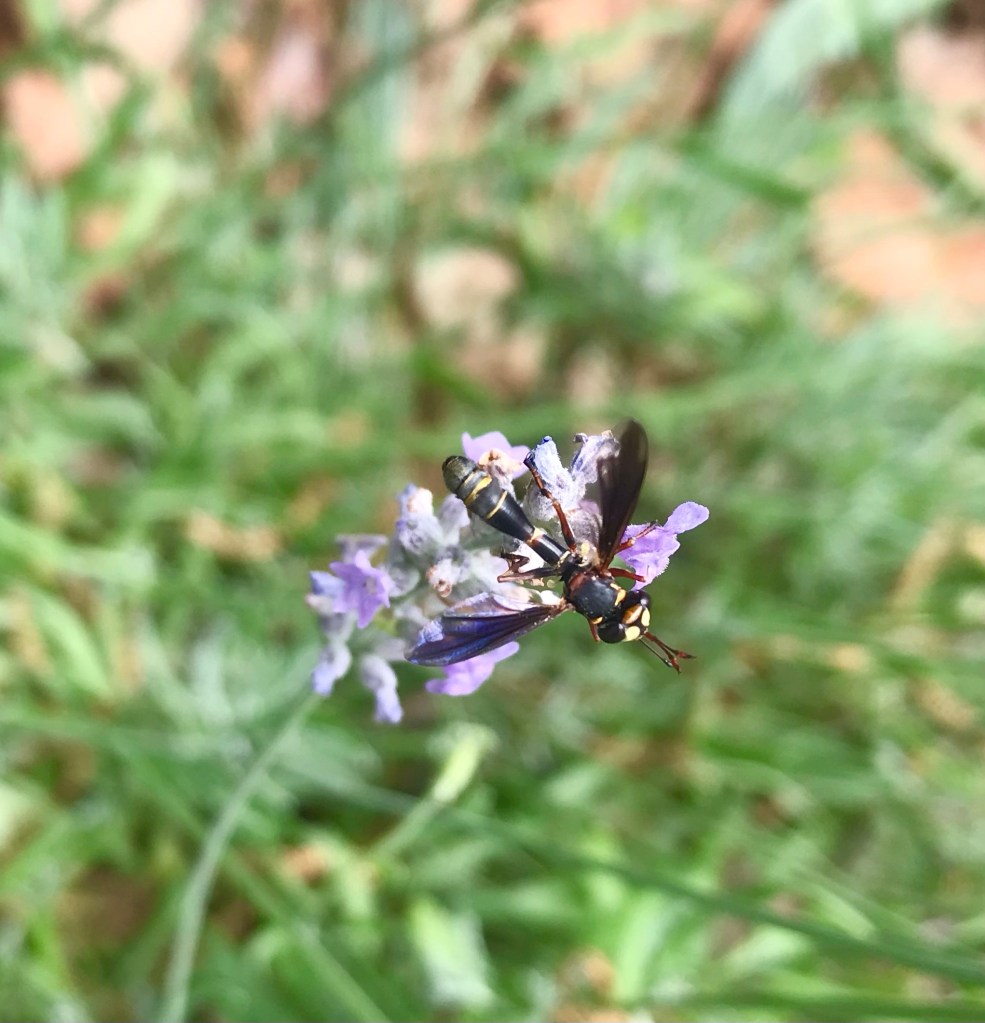 June 27 – A false wasp on English lavender. I think false wasps are some of the coolest looking flying insects in the garden.