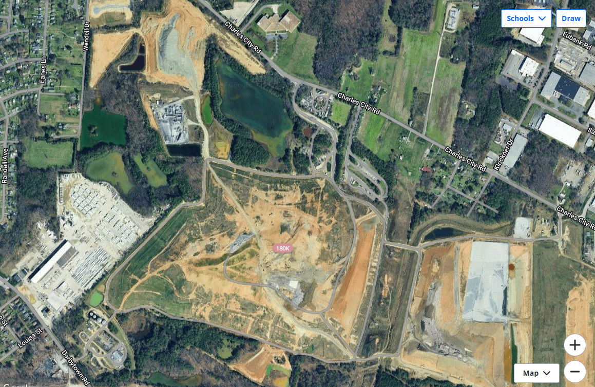 I’m imagining walking trails, giant woodland sculptures, and it might have some elevation that could be fun with a lookout tower at the top. The grounds at Glenstone would be a good inspiration. This plot of land looks like part of the East End Henrico landfill – I think the one that was shut down by Henrico County. I’m sure there are liabilities with owning a former landfill (environmental concerns, seepage, etc.), but I know it’s been done before and this could be a good chance to do it in the Richmond region.