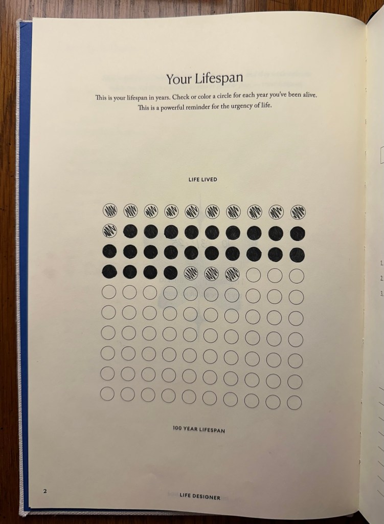At it’s core, it’s a workbook to plan the next ten years of my life. On October 31, 2035, I’ll be 47 years old. I actually started crying just typing that sentence.