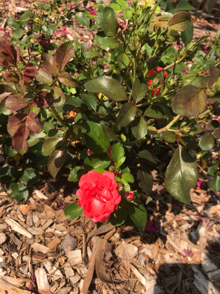 In mid-spring this year, we added Roses (blushing knock out, Lichfield Angel, and coral drift), hidecote lavender, two asters, and another lavender moved from the backyard (originally from our last house). I also planted a catmint that is so far looking like it needs more sun and two Gerber daisies that I’ll want to move eventually since the colors don’t really fit in. Some more photos for now,