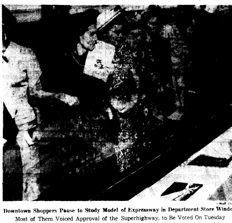 June 11 1950-Downtown Shoppers Pause to Study Model of Expressway