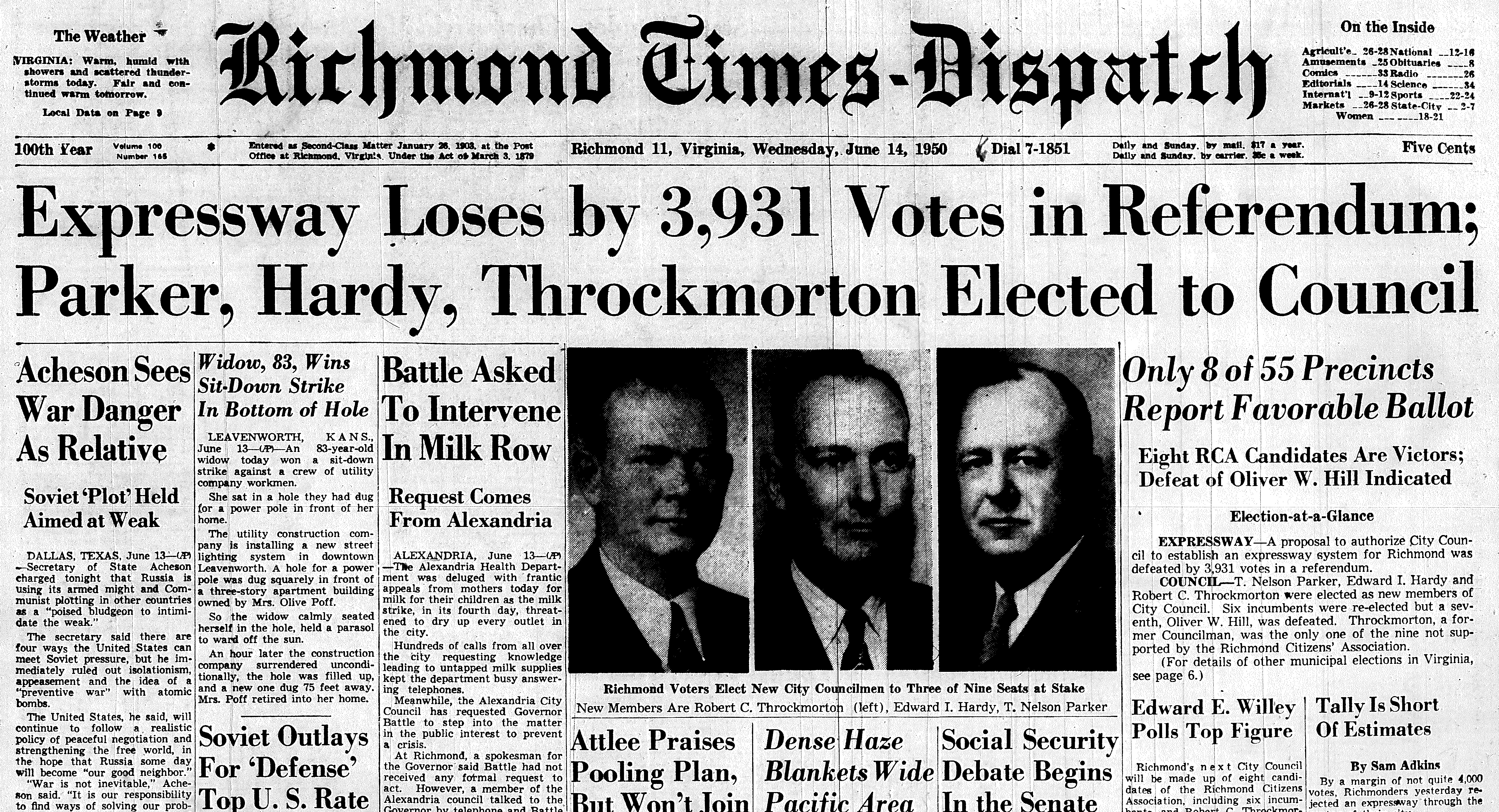 june 14 1950- Expressway loses by 3931 votes-Front Page Banner