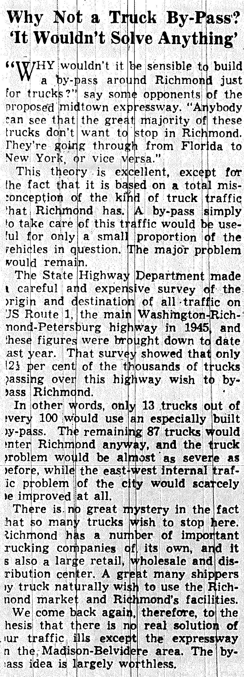 june 2 1950-truck bipass wouldnt solve anything-editorial