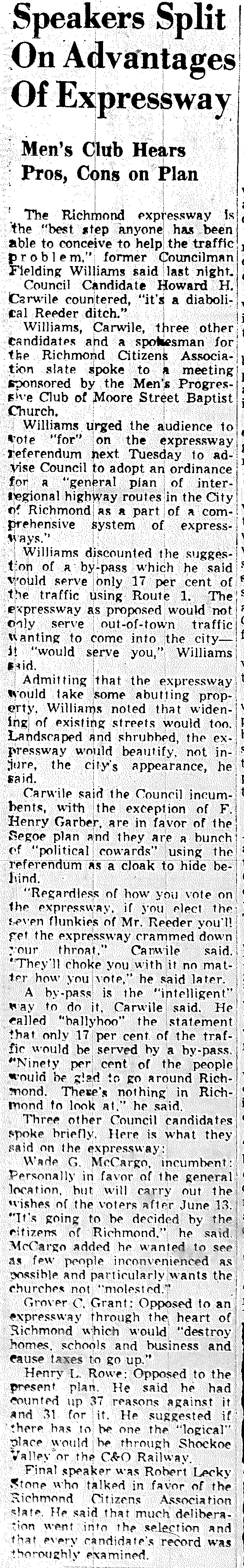 june 5 1950-speakers split on expressway-news