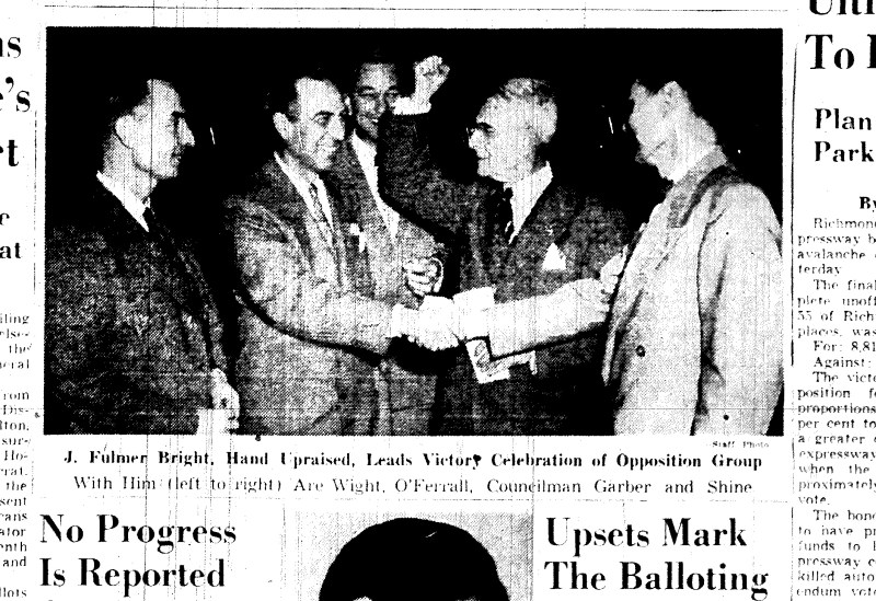 Nov. 7, 1951, J. Fulmer Bright celebrates victory with oppostion, 1