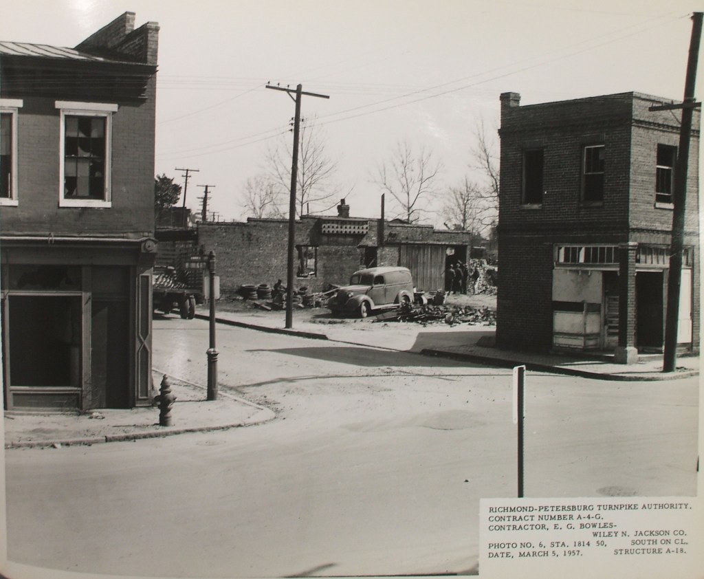 At the Library of Virginia there is an archive containing “works in progress” photos that reveal, through crisp and professional images, the drama of this highway story. After three years of mostly text-based research, these photos told me more than I ever dreamed I could know about the process of destruction that preceded the highway. Unfortunately, these copies are pretty low-quality, but anyone can go to the archives and get a professional copy made. My primary research focus was on the neighborhood of Jackson Ward and I collected work in progress photos from five locations in the neighborhood. Below, I have laid out the most compelling Jackson Ward series for a closer look. The rest of the photos can be found in galleries at the bottom of this page.